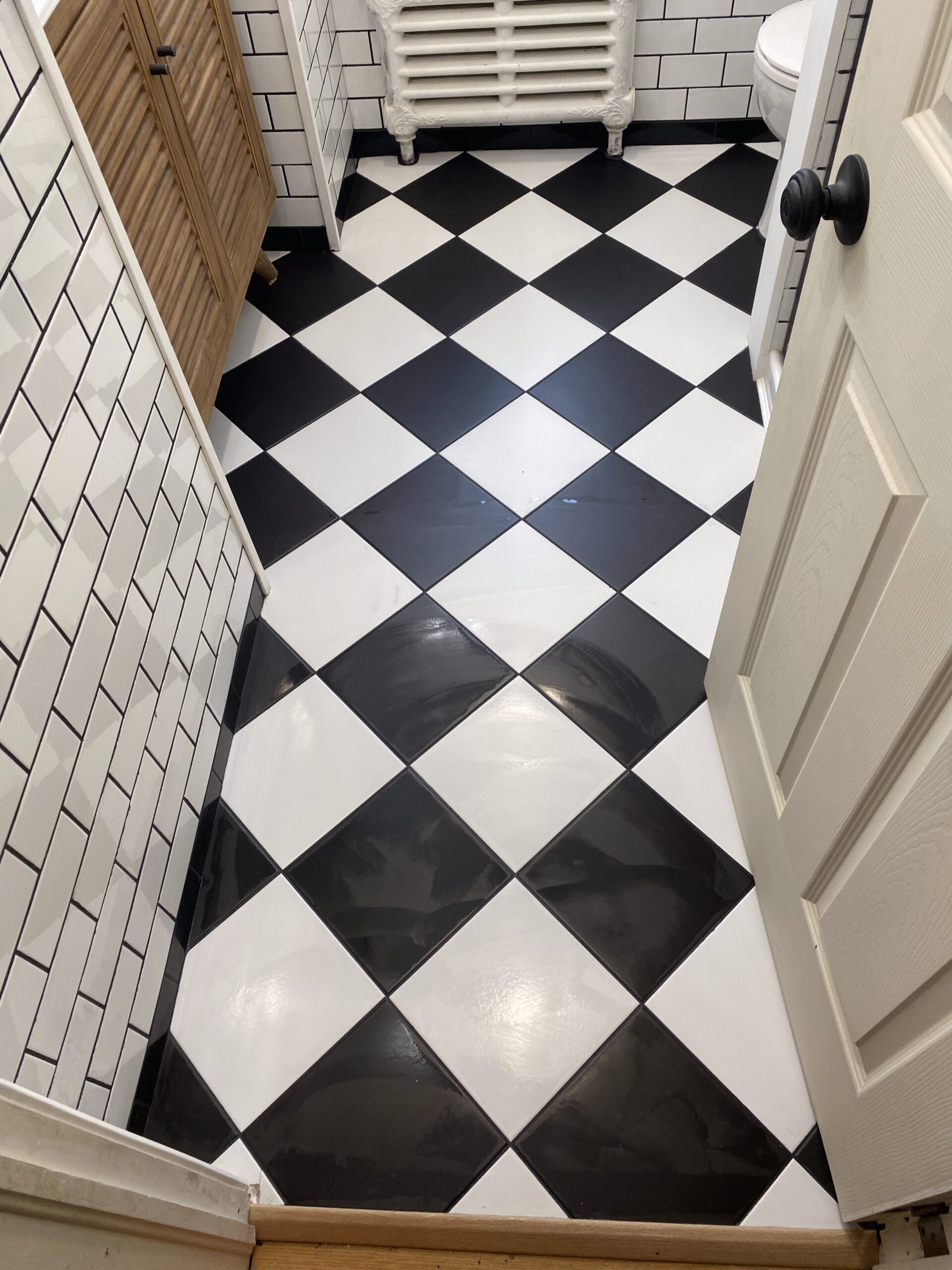 Result: sleek, updated floor that complements a fresh, modern bathroom.