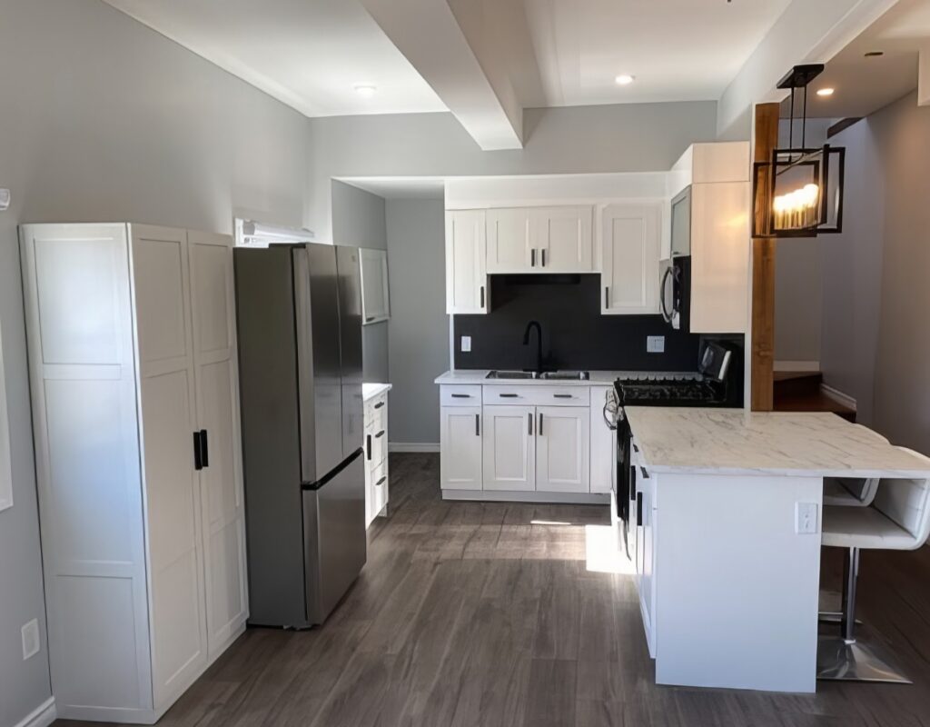 Result: bright, modern kitchen with open space and upgraded finishes, adding comfort and value to the apartment.